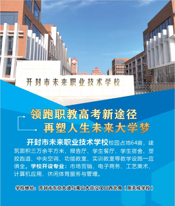 此外,开封未来职校还注重学生的综合素质培养。学校为学生提供广泛的社团活动和课外拓展课程,如科技创新、艺术培训、体育锻炼等,以培养学生的领导力、团队合作能力和创新思维。